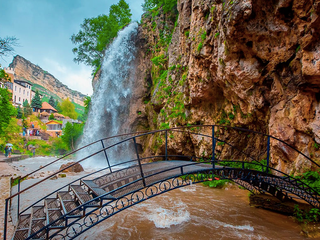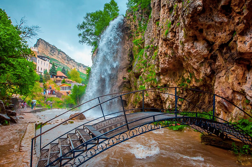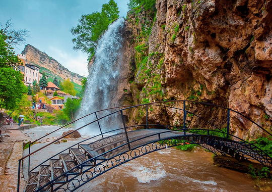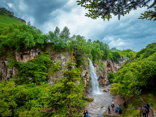 Вторая остановка на маршруте — не менее захватывающая. Медовые водопады в Кисловодске — гордость местных жителей и слабость туристов. Спускаясь по узкой тропинке вглубь гранитного каньона, можно вблизи оценить уникальность и самобытность каждого водопада. Первыми встречают гостей три красавца, расположенные на реке Аликоновка — Жемчужный, Скрытый и Чертова Мельница. Самый мощный из пятерки — Жемчужный. Ещё два, Большой и Малый Медовые, раскинулись на реке Эчки-Баш, притоке Аликоновки. Высота Большого водопада составляет целых 18 метров, он самый крупный из всех.