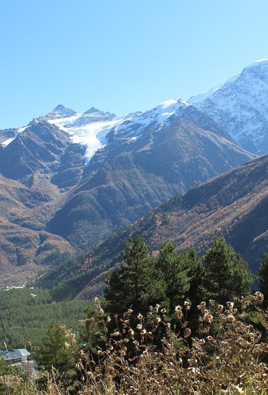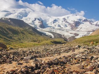 Экскурсия на Эльбрус из Кисловодска продолжится посещением миловидных полян Чегет и Азау. В первой точке группа делает остановку для того, чтобы вы могли подняться на склоны Чегета. Здесь можно увидеть знаменитую и прекрасную панораму Эльбруса и Главного Кавказского хребта. Здесь же виден знаменитый огромный ледник «Семерка».