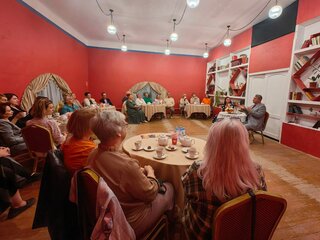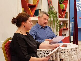 Мы ждем вас в уютной музыкально-литературной гостиной, где вы сможете насладиться пушкинской классикой в исполнении ведущих актеров нашего театра, а также почетных гостей — почетных актеров КНТ Ларисы Николаевны Зацепиной и Сергея Владимировича Зацепина.