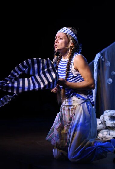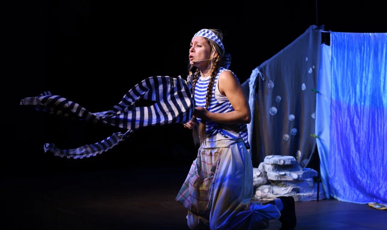 После спектакля ребята смогут участвовать в интерактиве — ваш ребенок попробует оживить героя и прожить морской день по сюжету спектакля: спасаться от акул, попробовать водоросли и познакомиться с огромной Медузой.