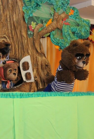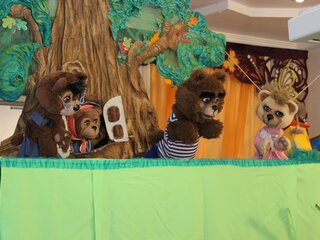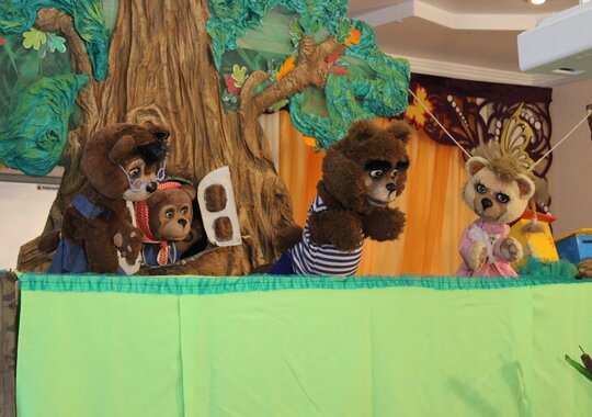 Тентек және ұшқалақ кішкентай аюлар Топ пен Топочка жазда ауылға атасы мен әжесіне қонаққа келеді. Бірде олар үйде жалғыз қалады. Оларға не болды, не білді, кіммен танысты, осы уақытты қалай өткізді, сіз спектакльді көру арқылы білесіз. Қойылым қарапайым ережелерді, тілалғыштық пен мейірімділікті балаларға ойын түрінде үйретеді.