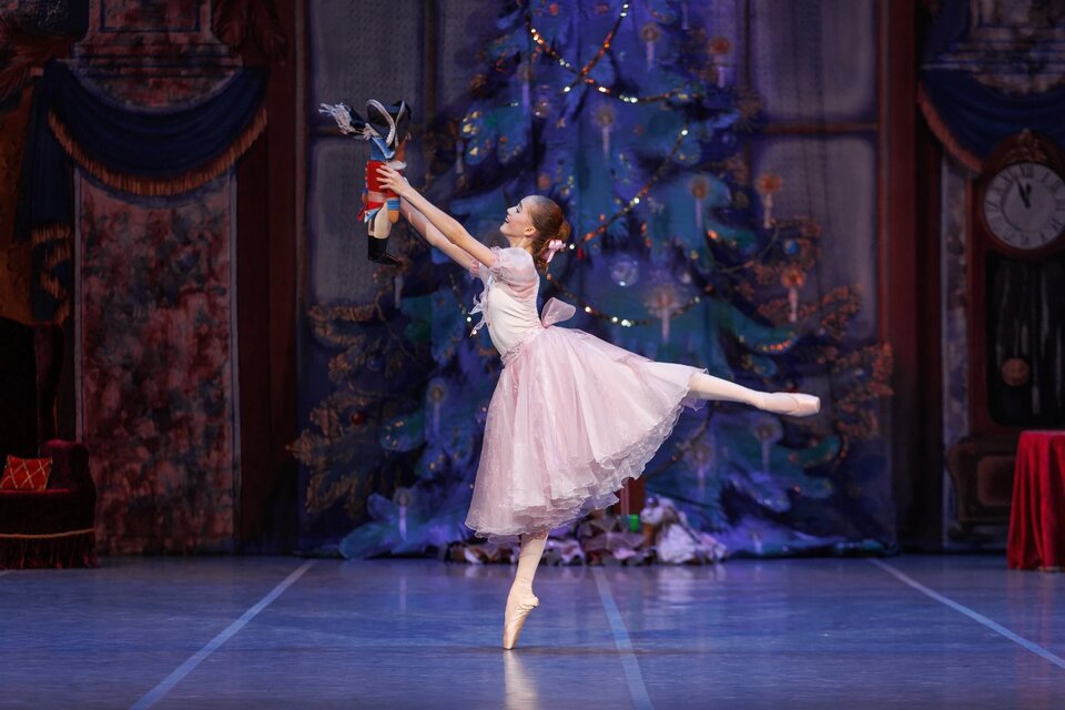 Вечером в канун Рождества на праздник в дом Штальбаумов собираются гости. Среди приглашённых старый чудак, изобретатель и мастер игрушек Дроссельмейер. Он приготовил детям чудесный подарок — забавного Щелкунчика. Празднично украшена гостиная в доме, все готово к началу праздника. Мари и Фриц — дети хозяев дома — с нетерпением ждут гостей. Вбегают дети. Начинаются праздничные игры и танцы. Весь вечер Дроссельмейер неистощим на выдумки. Переодевшись в костюм звездочёта, он показывает механических кукол Арлекина, Коломбину и Арапа. Способность оживлять игрушки восхищает детей.