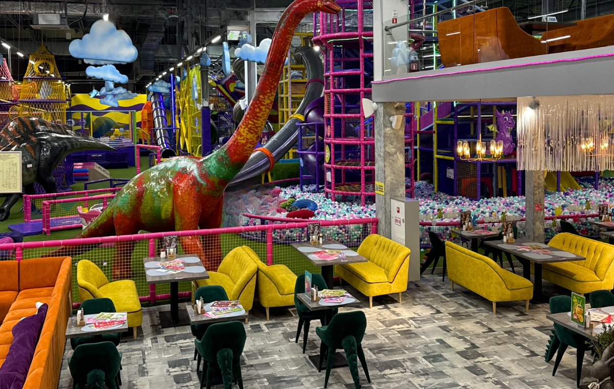 Откройте двери в мир бесконечных развлечений — 4500 кв. м с более чем 50 игровыми элементами, огромными динозаврами, батутами, горками и лабиринтами! После активного отдыха вас ждет уютный ресторан для всей семьи от динозавра Грека.
