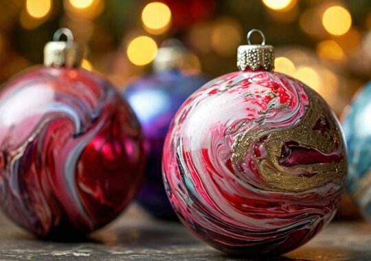 На мастер-классе под руководством профессионального художника Анастасии Филипповой участники создадут новогодние шары в технике Флюид Арт.