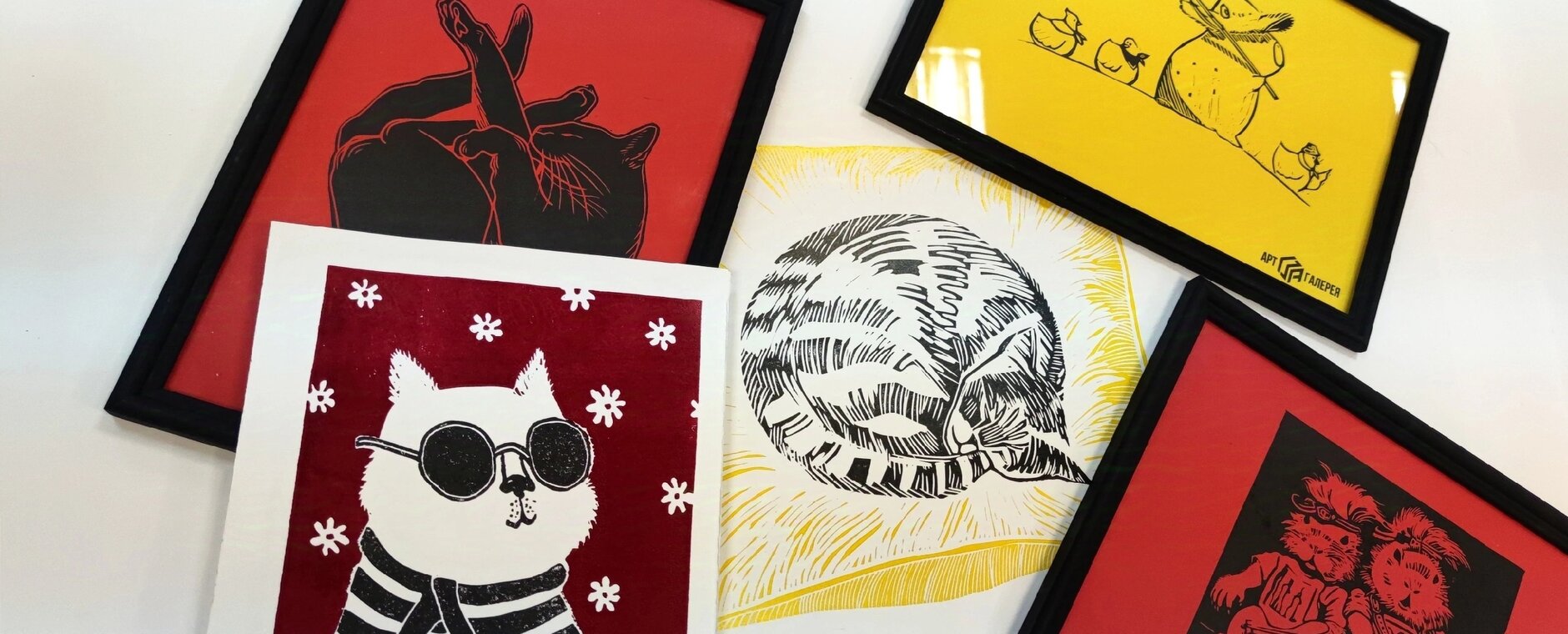 Познакомимся с техникой печати и нюансами данного вида графики, после чего на специальной бумаге и прижимном пресс-станке начнём выполнять гравюру в один цвет!