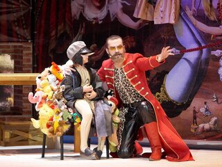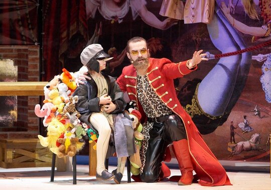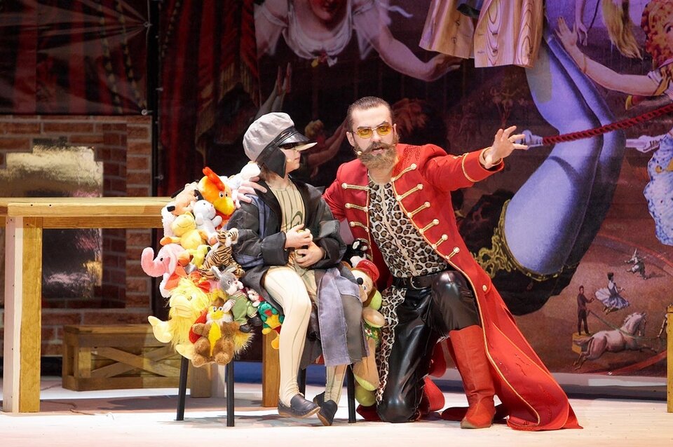 Удивительная сказка Алексея Николаевича Толстого, заглянувшего в театральное «зазеркалье», вызывает трепет в душе многих тех, кто любит театр, служит ему, приходит в театральные залы, посвящает ему всю свою жизнь. Наверное, именно поэтому так много версий, прочтений, интерпретаций этого знаменитого сюжета, именно поэтому жизнь сказки про Буратино будет вечной, как вечна мечта человека о счастье и об искусстве, которое поможет мечту превратить в реальность хотя бы на два часа театрального времени. В этом спектакле о счастье мечтают все — и Карабас-Барабас, которому театр необходим как воздух — там и только там он может чувствовать себя Барабасом. И Папа Карло, который делает театр своими руками — строгает театральную мебель, изобретает механизмы, придумывает и одухотворяет кукол, которые потом выйдут на сцену к зрителям. И Черепаха Тортилла, которой не хватило и трехсот лет, чтобы до этого счастья дотянуться. И Буратино, который ожил (превратился из деревянной куклы в человека) только для того, чтобы испытать, что же это за счастье такое — Пьеса? Роль? Театр? Гастроли?.. И куклы, которые мечтают о своем волшебном театре без Барабаса, чтобы играть только любимые роли и петь только красивые песни. Это же счастье! В состав исполнителей могут быть внесены изменения без дополнительного уведомления. Прав, наверное, мудрый Папа Карло, говоря: «Счастье с вами! Оглянитесь! То, что ищет Карабас, есть давным-давно у вас! Роли, сцена, зритель, дружба… Вам волшебный и не нужен балаган, где все прекрасно верится и без участья вашего. Какое счастье в этом?!». Действительно, как часто в погоне за призрачной целью, мы, наконец-то открываем заветную дверь… за которой оказывается другая дверь, а за ней еще одна, потом надо открыть следующую… и так до бесконечности, словно у нас в запасе, как у Тортиллы, 300 лет! В неистовых поисках ключа и двери мы не успеваем оглянуться вокруг себя и понять, что жизнь так прекрасна, но так коротка… «Мы счастливы! Порою головы не можем от усталости поднять. Но день проходит — мы в пути опять. Мы счастливы! А счастливы ли вы?», — спрашивают нас волшебные фонарщики. Продолжительность: 1 час 35 минут. Рекомендованный возраст: 0+. Дети до 3 лет проходят бесплатно без предоставления отдельного места.
