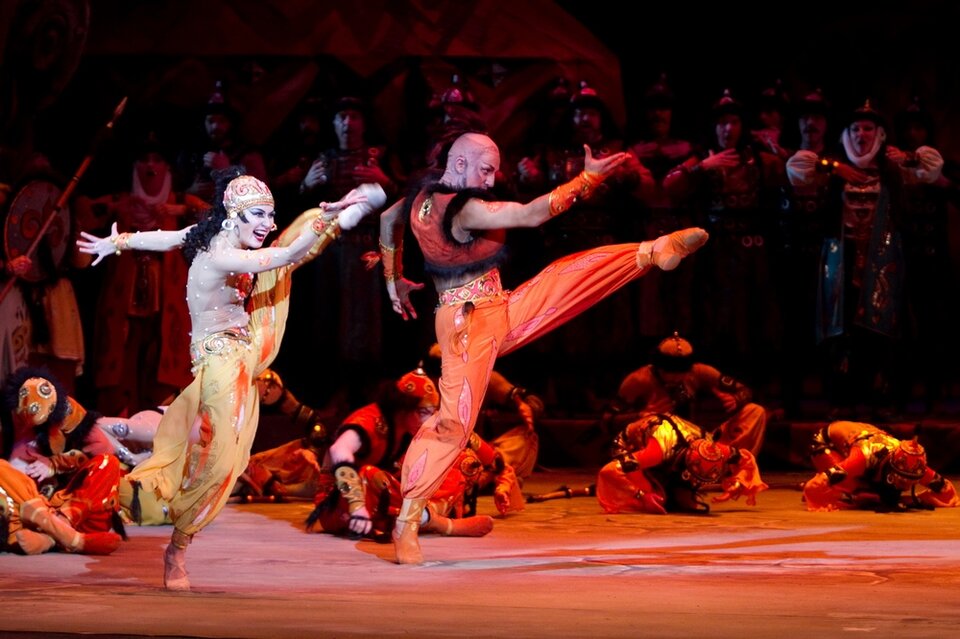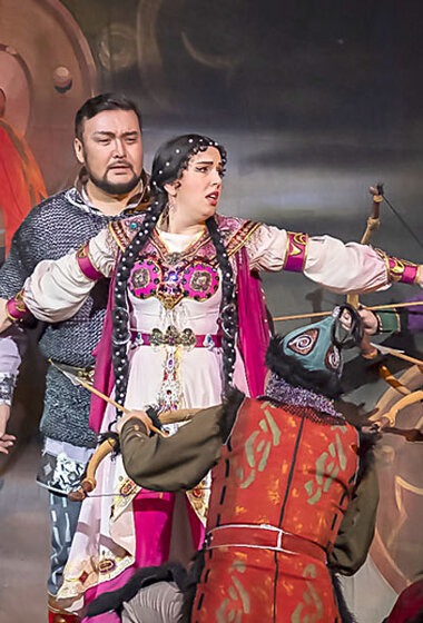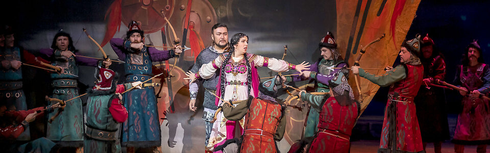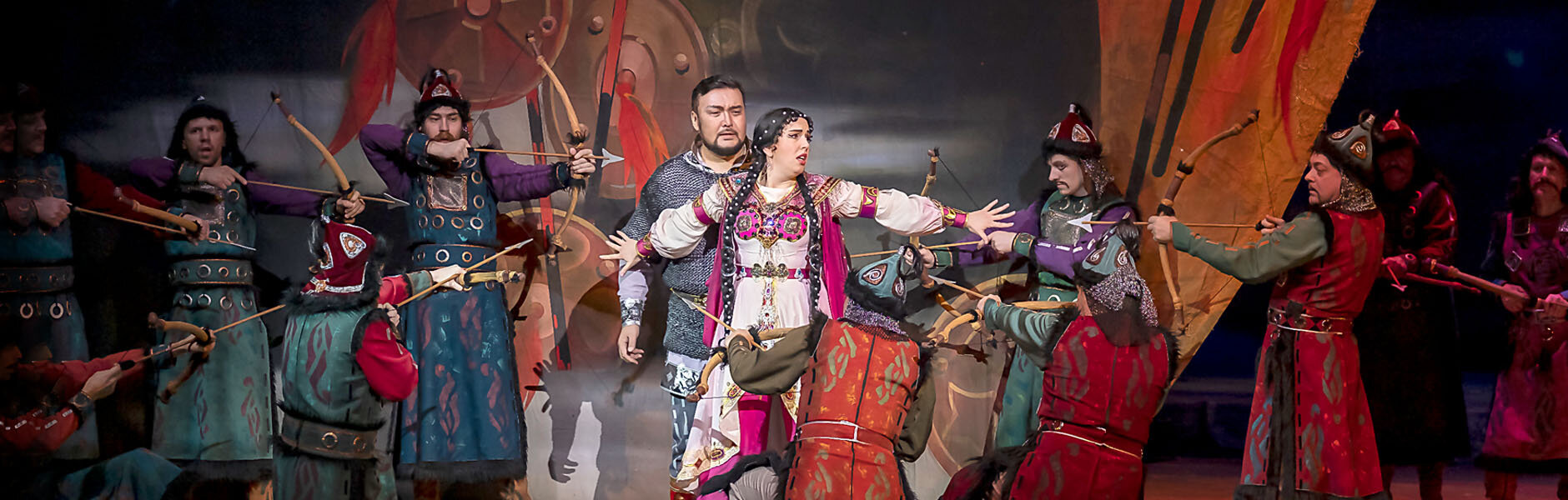 «Князь Игорь» — музыкальное воплощение исторических событий, описанных в древнерусском литературном памятнике «Слово о полку Игореве». Это опера о неукротимой жажде жизни и любви, безудержной удали и долге, наполненная потрясающими хитовыми ариями, масштабными хоровыми сценами и удивительными по своей красоте балетными номерами. Все это в ярких красках раскрывает перед публикой одну из главных страниц нашей истории. У оперы непростая судьба. Бородин создавал ее почти 20 лет. Чтобы проникнуться духом старины, он побывал в окрестностях Путивля, подробно изучал исторические источники, представленные летописями, старинными повестями и исследованиями о половцах. В монастырях и хранилищах маэстро с головой погружался в загадочный мир старинных манускриптов, хранящих напевы древних былин. Однако Бородин так и не успел закончить эту оперу. Уже после его смерти композитор Александр Глазунов завершил работу своего учителя. Впервые «Князь Игорь» был поставлен на сцене Мариинского театра в 1890 году и, сразу же завоевав любовь публики, начал покорять сцены театров не только России, но и всего мира. На нашей сцене опера впервые была показана задолго до официального открытия театра, а именно 12 августа 1978 года, в день 350-летнего юбилея Красноярска, тем, кто не один год строил здание Красноярского оперного. Красноярская постановка «Князь Игорь» — масштабный яркий спектакль, в котором задействовано огромное количество артистов: солисты оперы, хор и балетная труппа. Декорации и костюмы отличаются необычайной яркостью и богатством оформления. Боярские шубы и шапки из бархата, украшенные мехом, воинские доспехи… В общей сложности для этой оперы было изготовлено более 400 костюмов. Опера наполнена яркими разнообразными хоровыми сценами и балетными номерами, среди которых, пожалуй, самые известные — «Половецкие пляски» и песня половецких пленниц «Улетай на крыльях ветра» в исполнении хора. В состав исполнителей могут быть внесены изменения без дополнительного уведомления.