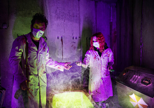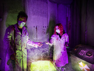 Вирус унес жизни половины населения Земли, превратив остальных в вечно голодных зомби. Чтобы спасти человечество, вы должны проникнуть в секретный бункер, прорваться сквозь толпы зомби до лаборатории и достать вакцину от зомби-вируса. Динамичный квест-перформанс площадью 500 м2 - в локациях поместился даже автомобиль! Квест все время держит в напряжении: вам придется убегать от толп зомби, красться в темноте и выживать. Динамичный перформанс. Вам придется убегать от толп зомби, красться в темноте и выживать. Квест без физического контакта с актерами.