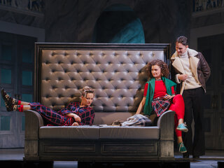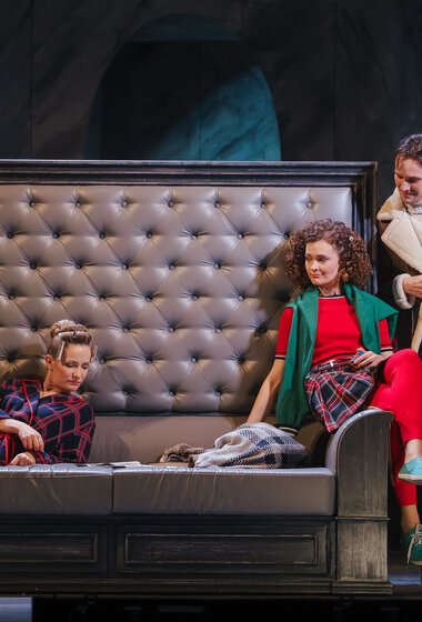 Действие известной всем комедии А. С. Грибоедова перенесено в 70-80-е годы XX века. На сцене — впечатляющие интерьеры московского метро, артисты в модных костюмах советского времени, звучат хиты 70-80-х годов.