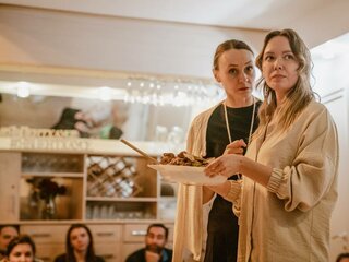 В помещении нужно будет разуться, можно взять сменную обувь, или воспользоваться бахилами.
