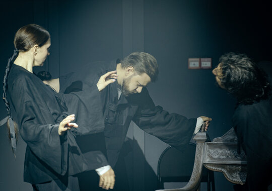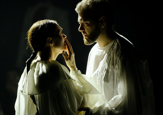 Нет повести печальнее на свете, чем?.. Все верно. Ответ знают даже те, кто не читал величайшего английского драматурга. Кто-то смотрел фильм или играл в компьютерную игру по мотивам, кому-то сюжет рассказали друзья. Однако «Ромео и Джульетта» — больше, чем история о несчастных влюбленных, в ней огромное количество уровней и слоев, которые раскрываются только внимательному читателю. Сегодня это уже не столько трагедия Шекспира, сколько мифологема, живущая сама по себе. Именно она становится объектом исследования режиссера Надежды Столбовой. Вместе с артистами она обращается к смыслам и сюжету «Ромео и Джульетты» во всех жанрах, исследует пост-историю пьесы, и сплетает свое произведение — причудливый орнамент из фрагментов оригинала, разных переводов, мюзикла на французском, оперы и балета: «Это не Шекспир от начала до конца, с каждой буквой, с каждой точкой. Для меня эта история — про попытку диалога, которую предпринимают все персонажи, про их нестерпимое желание быть услышанными и понятыми. О разных вариантах коммуникации, удачных и неудачных. Капулетти и Монтекки не слышат друг друга очень давно — никто не помнит, из-за чего началась их вражда, но они в ней живут, кому-то это даже нравится. И это то, что волнует сегодня всех нас. Мир переменчив, и нам важны те, кто нас не осуждает, не прогоняет прежде, чем выслушает и поймет. Иногда мы путаем желание быть услышанным с желанием навязать свою правду, бываем одержимы какой-то мыслью или идеей настолько, что пытаемся запихать ее в глотку другому, надеясь осчастливить его насильно. В нашем спектакле тему взаимодействия людей мы препарируем как в лаборатории. Рассматриваем отношения в разрезе. Это исследование. Да, художественное, с музыкой, пением, хореографией, диалогами, юмором (потому что жизнь — она многогранная!), но в окуляре нашего микроскопа всегда — человек с его правдой и смыслом. Поэтому действие будет нелинейным, мы обращаемся к фрагментам из разных актов, когда они нужны как некий пример понимания-непонимания. Конечно, сюжет прочитается, но возможно, интерпретируется иначе. Думаю, у нашего спектакля будут зрители, которые придут на него не один раз».