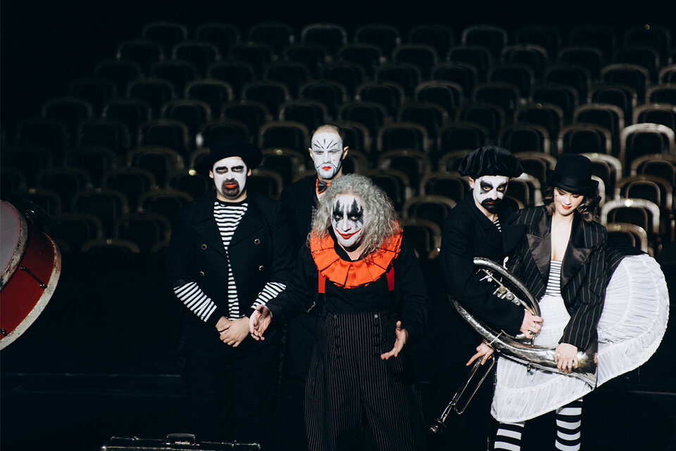 В спектакле мы увидим хрестоматийный сюжет глазами двух второстепенных персонажей – приятелей Гамлета по университету: Розенкранца и Гильденстерна. Их позвали, чтобы они по-дружески выведали у Гамлета причину его странного поведения. У Шекспира Розенкранц и Гильденстерн – предатели. В нашем спектакле это еще и несчастные люди, не понимающие, как они могли попасть в такой переплет, и не имеющие сил сопротивляться судьбе. Это два обычных и даже заурядных человека, но только они выглядят нормальными людьми, в то время как все остальные персонажи шекспировской трагедии предстают одержимыми безумцами. Пьеса написана в 1966 г., а перевел ее на русский язык сам Иосиф Бродский.