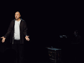 Имя актера театра Георгия Дмитриева хорошо известно зрителям Красноярска по таким ролям, как Клавдий («Розенкранц и Гильденстерн мертвы»), Лука («Лекарь поневоле»), Ворон («Маленькая колдунья»), Карл («Мы, герои») и др.