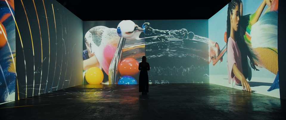 Первая часть готовит зрителя к погружению: здесь расположены панно из восьми экранов, скульптура и пластификация, а также зона истории, которая знакомит с реальным Пергамским алтарём и его судьбой.
