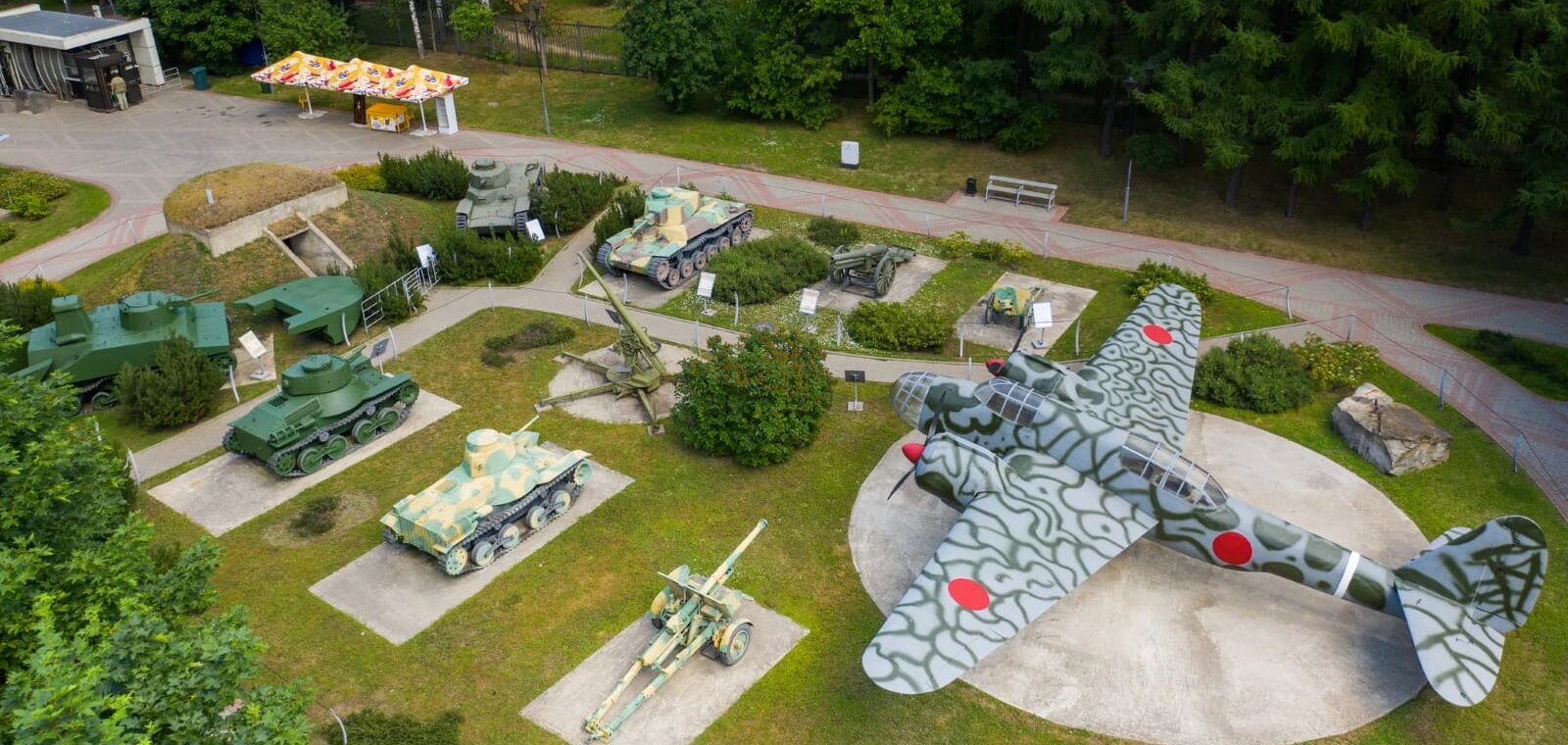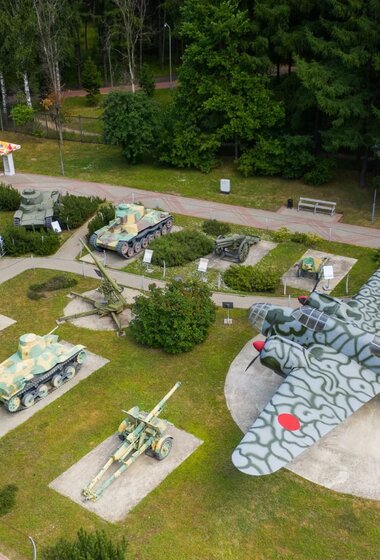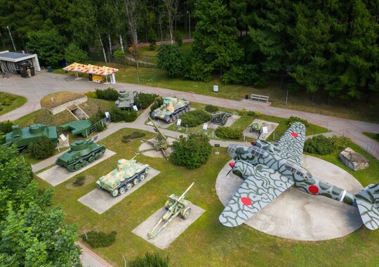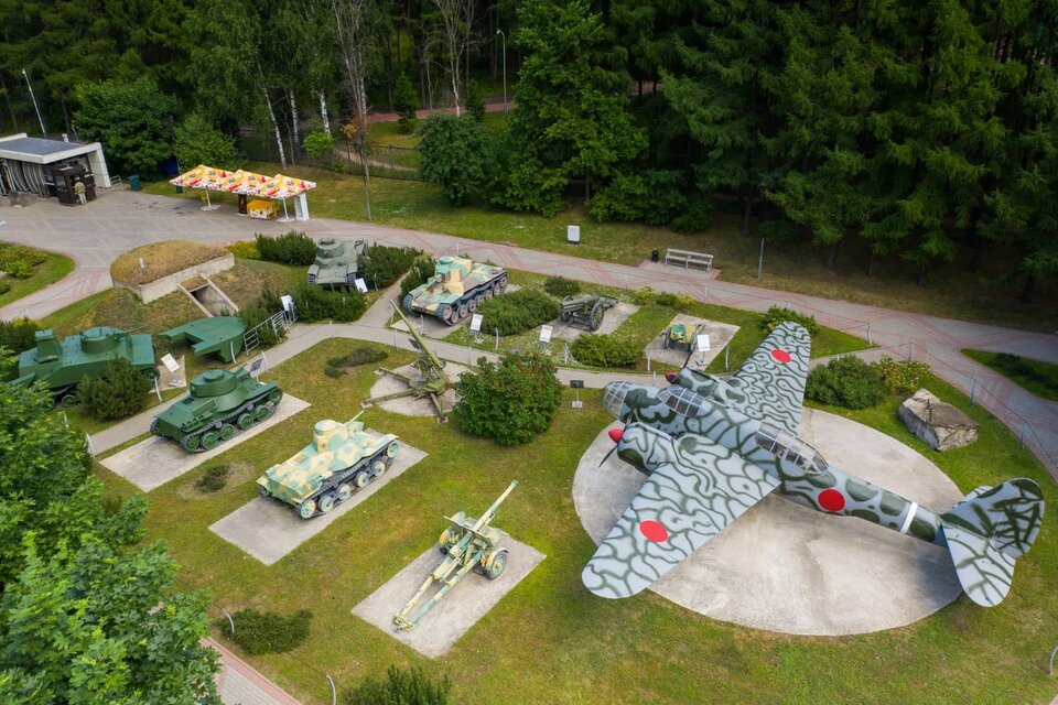 Музей располагается под открытым небом на озелененной территории площадью более 10 Га. Здесь собрана уникальная коллекция военной техники и вооружения армий: СССР, Германии, Англии, Франции, Чехословакии, Японии и США. В тематических локациях музея представлено более 400 раритетных экспонатов, интерактивные экспозиции и макеты техники, спецэффекты и скульптурные фигуры участников событий военных лет.