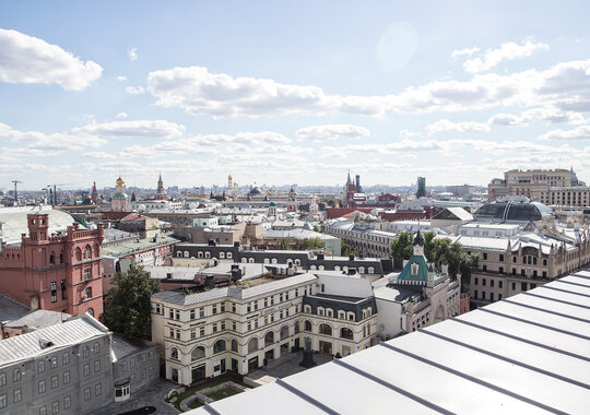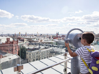 С крыши Главного Детского открывается уникальный вид на исторический центр: вы увидите Кремль, Политехнический музей, Лубянскую площадь и шпиль главного здания МГУ. Полюбоваться на город можно при помощи подзорных труб.