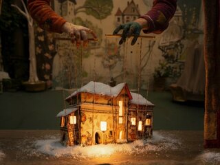 Особое внимание привлекает театральная инсталляция, созданная сценографом Дамирой Янушкевич и нейрохудожником Валерией Титовой. Пространство обретает облик вечерней заснеженной площади, где застыла сцена балаганной мистерии. А через морозные окна-экраны можно заглянуть в дома горожан где полным ходом идет подготовка к Рождественскому празднику. В Казённой палате гости оказываются в атмосфере помещичьего дома накануне праздника. В зале царит особое настроение: большая новогодняя елка украшена подарками, в воздухе пахнет мандаринами, а отблески свечей создают таинственный полумрак. Здесь всё готово к представлению — вот‑вот зазвучит музыкальная шкатулка, кукловод займет свое место за ширмой, а фигуры автоматона начнут свое движение. На полках старинной библиотеки расположились персонажи перчаточного домашнего театра начала XX века: Петрушка и клоун, чёрт и доктор, няня с ребенком, слуга, собака и даже крокодил.