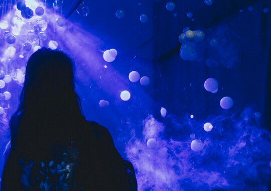 «Дыхание перемен» — интерактивная инсталляция в зале Воздуха, сотканная из атмосферы, света и прозрачных сфер, каждая из которых — это мысль, отпущенная в путь.