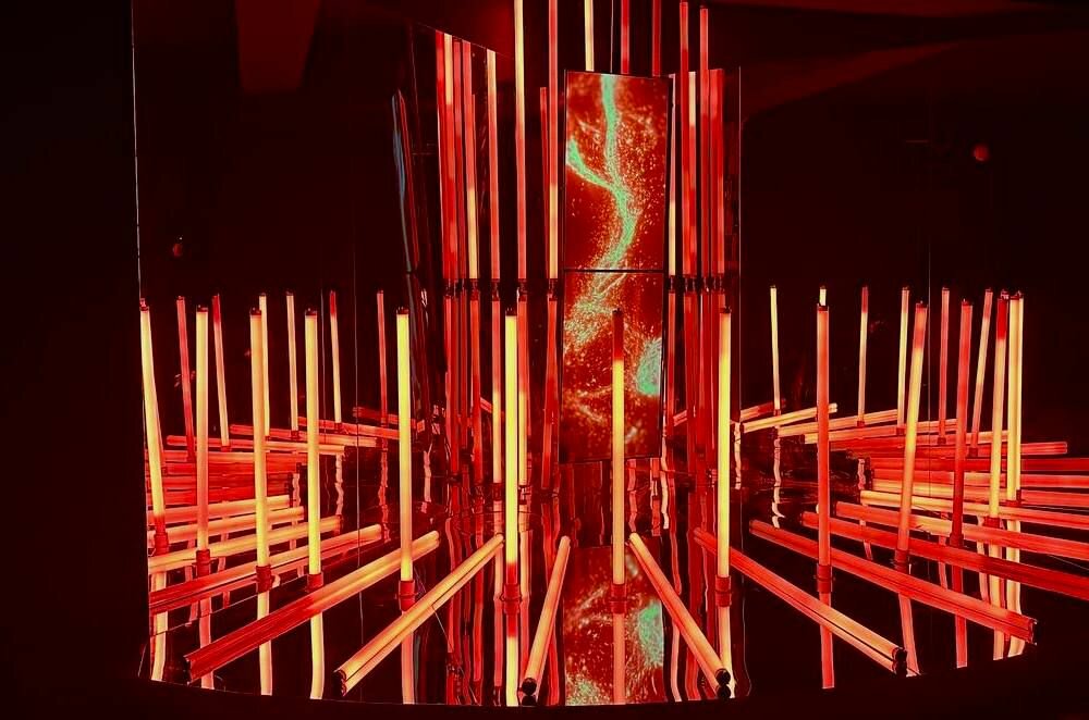«Генезис» — аудиовизуальное световое шоу об истории рождения мира, точка отсчёта, пролог выставки, приглашение к исследованию чувств и сопричастности к живому миру.