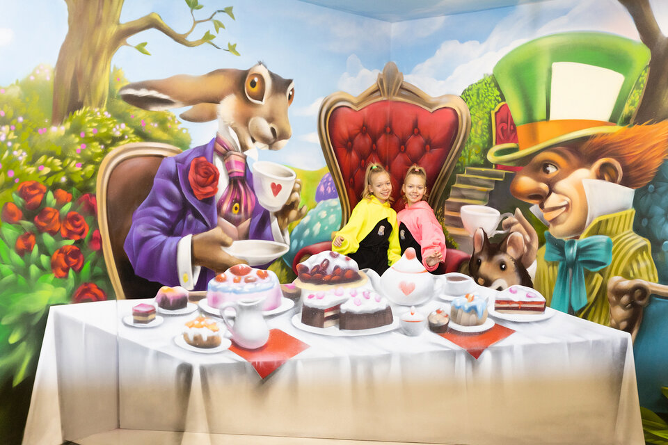 Лабиринт «Алиса в Зазеркалье». Все страньше и страньше, ведь вы в Зазеркалье, где возможны любые чудеса! Шагните в фантастический лабиринт, населенный загадочными существами из сказок Льюиса Кэрролла. Вас ждут удивительные оптические иллюзии, чудесные превращения и незабываемые приключения. Примите участие в безумном чаепитии с Белым Кроликом и Шляпником, на которых обиделось само Время. Познакомьтесь с таинственным Чеширским Котом и его летающей улыбкой. Сыграйте партию в самые необычные в мире шахматы. Удивляйтесь, радуйтесь, веселитесь, восхищайтесь! Путешествие по Зазеркалью оживит воображение, подстегнет творческую фантазию, поднимет настроение и детям, и взрослым!