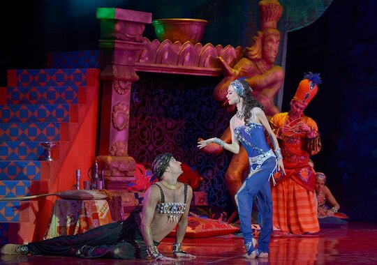 Балет на музыку симфонической поэмы Николая Римского-Корсакова «Шахерезада» на сюжет одной из сказок «Тысячи и одной ночи» — «О царе Шахрияре и его брате» — Михаил Фокин поставил в 1910 году в антрепризе Сергея Дягилева с Идой Рубинштейн и Вацлавым Нижинским в главных партиях. Балет, повествующий о том, как царица Шехерезада спасла от смерти молодых жен Шахрияра, рассказывая ему свои сказки, вошел в историю мирового танца как абсолютно революционный хореографический текст, пропитанный страстью и эмоциями насколько это было возможно в пространстве театра начала ХХ века.
