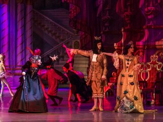 Она предсказывает, что Аврора, щедро одаренная добрыми волшебницами, заснет, уколов палец, и сон ее будет вечен. Волшебницы изгоняют фею Карабос. Фея Сирени успокаивает встревоженных Короля и Королеву. Она говорит, что наступит день, когда сказочный принц разбудит Аврору своим поцелуем.