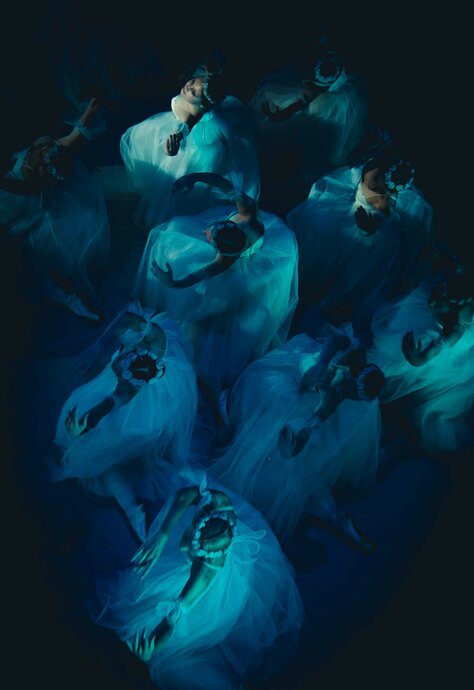 На сцене оживает старинная легенда о виллисах — невестах, умерших до свадьбы. Ночью они выходят из могил и исступлённо танцуют при свете луны. Горе тому, кто попадётся им на пути: виллисы кружат путника в бешеном танце, пока тот не упадёт замертво...