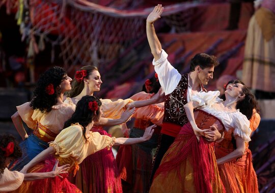 Классическая постановка Франко Дзеффирелли с участием звезд мировой оперной сцены и испанских танцоров фламенко.