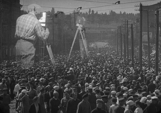 Человек с киноаппаратом снимает людей, места, объекты. Кинокамера является действующим лицом самого процесса съёмки: в воздухе, под землёй, в самой гуще событий. Киноглаз, который наблюдает, фиксирует малейшие нюансы, не давая оценки, не следуя сценарию.