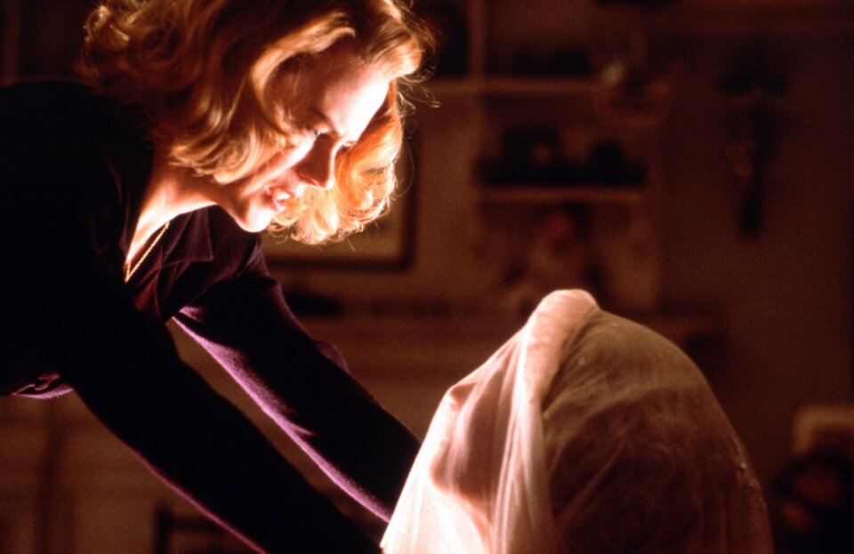 Её дочь и сын страдают странным заболеванием, они не выносят прямого дневного света. Когда в доме появляются трое новых слуг, им приходится соблюдать правила: все комнаты всегда должны быть в полумраке, и нельзя открывать дверь, пока не заперта предыдущая. Но мерному течению жизни дома вскоре приходит конец — некая потусторонняя сущность пытается нарушить заведённый порядок.