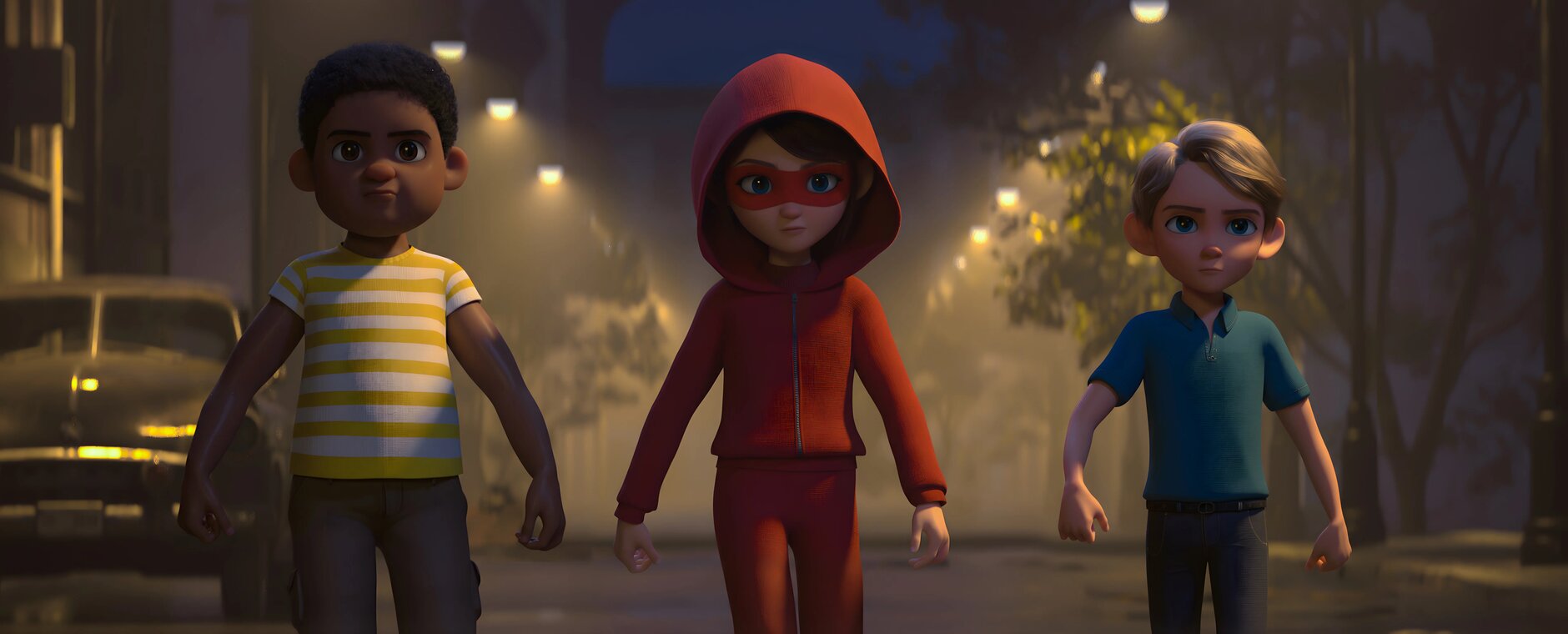 Прячась в библиотеке от одноклассников, с которыми не ладит, Лиза находит «Настольную книгу супергероя». В ней заключены советы, как развить в себе суперспособности. Девочка начинает тренироваться — учится летать и понимать язык животных — и помогает людям в беде, получив прозвище Красная маска. Тем временем злодеи собираются погрузить город в вечную тьму. Лизе нужно собрать команду единомышленников, чтобы противостоять злу, спасти город и доказать, что супергероем может стать каждый.