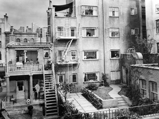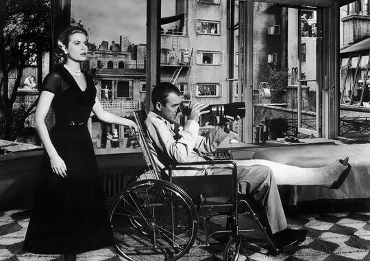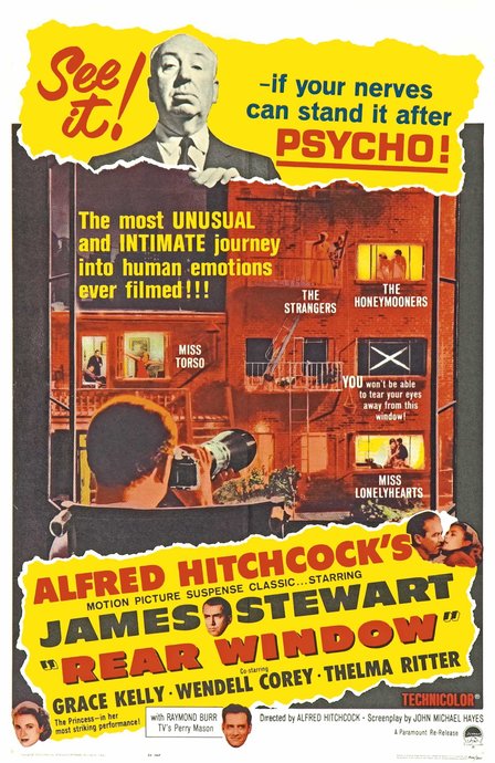 Прикованный из-за сломанной ноги к инвалидному креслу фоторепортёр от скуки начинает наблюдать за соседями, живущими в его же доме, чьи окна выходят во внутренний двор. Действие происходит в Гринвич Вилледж. Постоянные наблюдения наталкивают его на подозрение, что один из соседей убил свою жену…