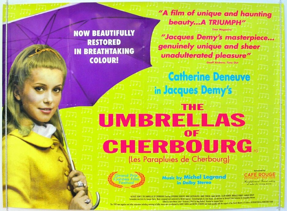 Женевьева работает в семейном галантерейном магазинчике – продаёт зонты. Она влюблена в автомеханика Ги, и тот отвечает ей взаимностью. Но вскоре Ги забирают в армию и отправляют в Алжир. Расставаясь, влюблённые обещают ждать друг друга. Затем Женевьева узнаёт, что беременна, а вестей от любимого всё нет, и девушка соглашается на брак с состоятельным и солидным мужчиной. Фильм получил «Золотую пальмовую ветвь» Каннского кинофестиваля (1964), а также 5 номинаций на премию «Оскар» (1965-66).