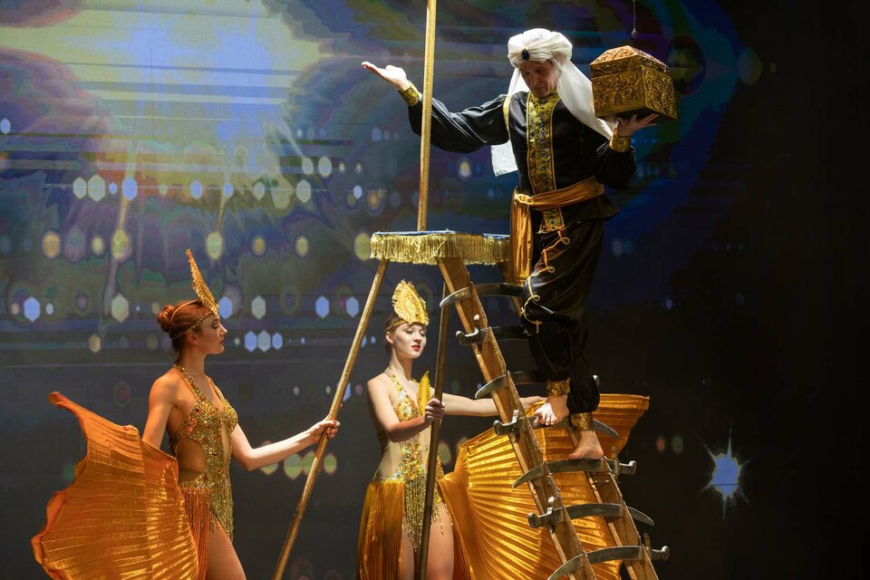 Захватывающие номера великой иллюзии, чтение мыслей, исчезновение и множество других высокотехнологичных и опасных трюков, которые авторы держат в строжайшем секрете. Разделение человека и мнемотехника, прокалывание лампами и пикой, авторские номера и загадочные иллюзионы, зажигательные танцы и яркая эффектная музыка — это для всех кто любит Чудеса!