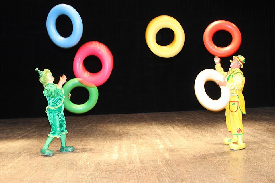 В программе шоу представлены очень редкие и уникальные номера, такие как «Эксцентриада с большими мячами», «Девушка в прозрачном шаре», «Клоун-художник», «Дутик», «Танцующий Кактус», «Комический баскетбол», «Девочка на шаре» и другие.