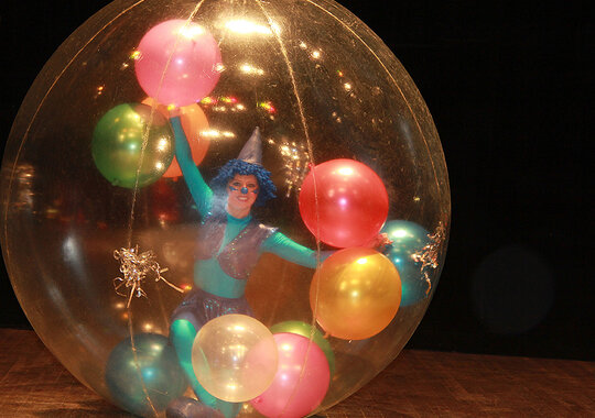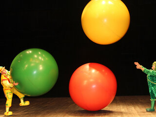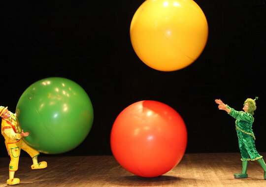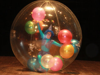 Во время представления зрители смогут поиграть огромными надувными мячами, увидеть прозрачные шары, в которые волшебным образом попадают артисты, которые потом играют с ростовыми куклами, крутят огромные обручи и ловко манипулируют разнообразными надувными фигурами. От всей души посмеяться и просто отдохнуть.