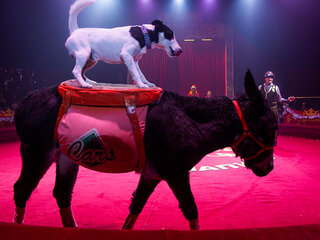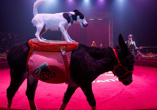 Завершающий аккорд программы — наездники и дрессированные собаки на осликах под руководством Айдына Исрафилова — автора и исполнителя уникальных цирковых номеров, создающих по-настоящему семейную атмосферу.