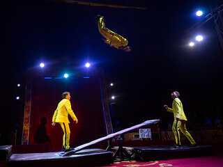 Звёзды манежа воздушные гимнасты, акробаты на подкидной доске и джамперах «лемон бразерс» и «джамп-эн-ролл» под руководством Владимира Рощина (Обладатели серебряных и бронзовых наград на международных фестивалях циркового искусства в России и Испании и Китае).