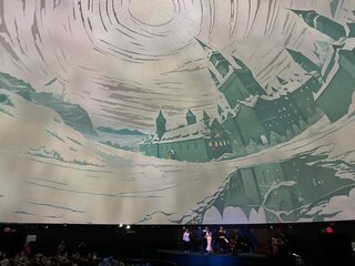 Камерный оркестр Imperialis Orchestra играет вживую. Это слышно и видно: как меняется дыхание в медленных темах, как зал начинает улыбаться на знакомых мелодиях, как дети вдруг перестают крутиться и просто смотрят вверх. Потому что смотреть тут есть куда.