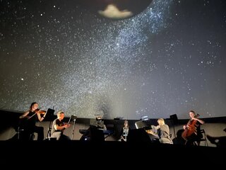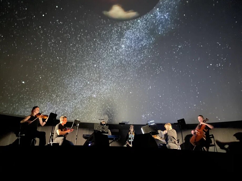 А сверху будет главное пространство этого концерта: видеопроекции на большом куполе — космос, планеты, звезды, туманности и графика по мотивам анимационных миров. Видеоконтент создан медиахудожниками планетария при поддержке Роскосмоса, и собран так, чтобы работать именно с этой музыкой: от тихих, почти сказочных моментов до бодрых тем из «Утиных историй» и «Чип и Дейла».