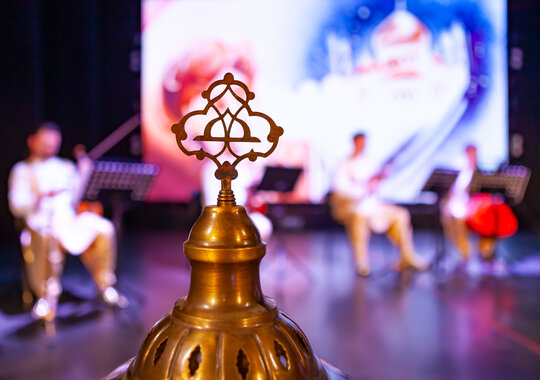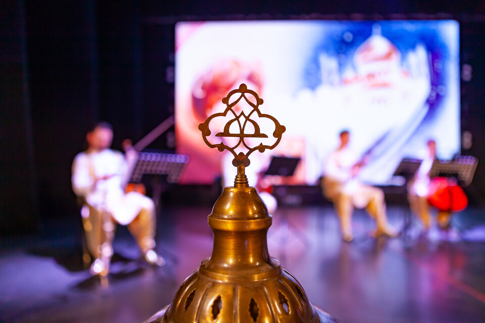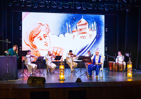 Текст сказки читают актёры театра и кино Илья Баранов и Александра Аронс. Ярким дополнением шоу станет звуковой дизайн, который поможет ощутить зной жаркого арабского дня и холод ночной пустыни. Фантастические звуки создадут эффект присутствия экзотичных зверей, джинов, а также погрузит вас и вашего ребёнка в мир магии и волшебства.