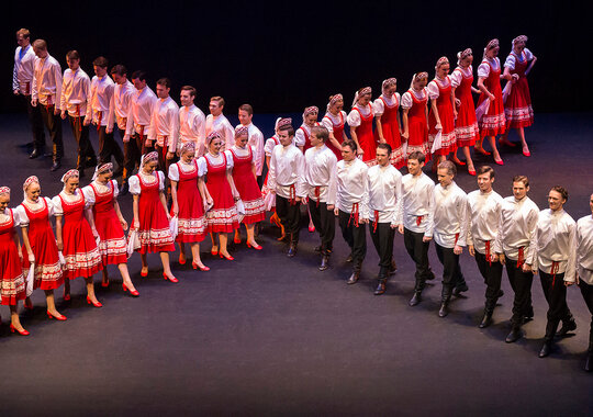 В программу концерта включены номера из цикла «Танцы народов мира» — русский танец «Лето» — визитная карточка ансамбля, белорусский танец «Юрочка», сюита молдавских танцев, старинная городская кадриль из цикла танцев «Картинки прошлого», греческие «Сиртаки» на музыку Микаса Теодоракиса и многие другие произведения в постановке Мастера. В завершении концерта ансамбль представит легендарное моисеевское «Яблочко».