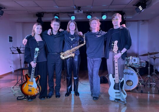 Приглашаем вас на встречу с творчеством молодёжного перспективного коллектива Five in Flow! Музыканты начали играть вместе в сентябре 2025 года, исполняют джаз, латину, баллады и фанковые композиции.