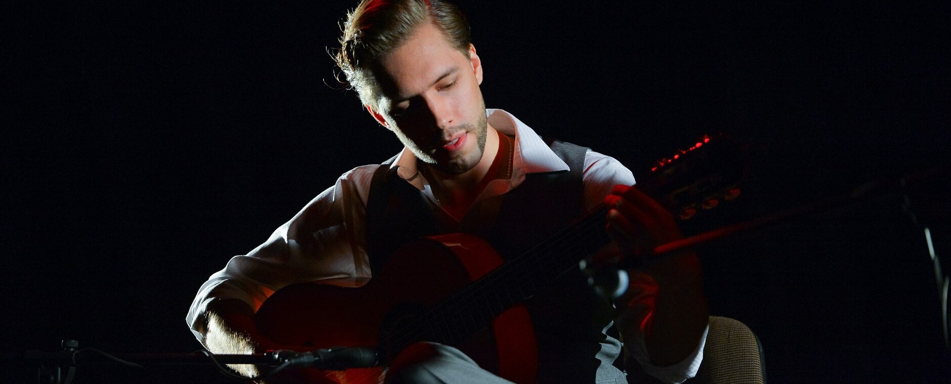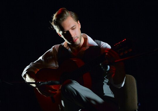 Глеб Окунев — виртуозный гитарист фламенко, лауреат международных конкурсов и фестивалей, член Московской Международной Ассоциации Гитарного Искусства.