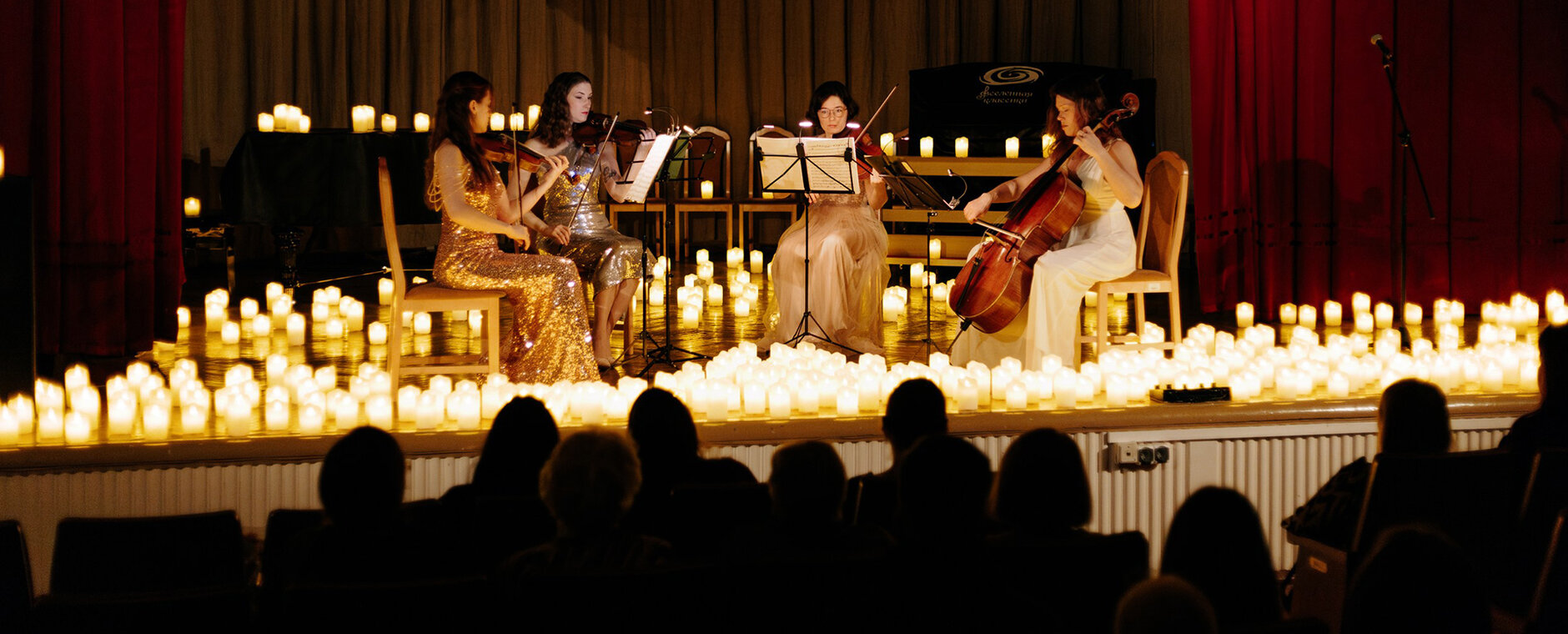 Приглашаем на изысканный концерт классической музыки при свечах. В замечательной акустике и чарующей атмосфере для вас прозвучат подлинные шедевры — «Времена года» Антонио Вивальди. Четыре скрипичных концерта из цикла «Спор гармонии с изобретением», одни из самых знаменитых его произведений и одни из известнейших музыкальных произведений в стиле барокко. Каждый концерт посвящён одному времени года, каждый состоит из трёх частей, крайние части являются быстрыми, а средняя медленной. Каждому из концертов композитор предпослал сонет — своего рода литературную программу. Предполагается, что автором стихов является сам Вивальди. Подарите себе и близким праздничное настроение, фейерверк эмоций и незабываемые впечатления! Исполнители на 6 декабря: Струнный квинтет Cappriccio — коллектив виртуозов, призер многочисленных международных фестивалей и конкурсов, выступающий на известных и популярных сценах России и Европы: Унанова Наталья (скрипка) Габриелян Сильвана (скрипка) Ефремова Надежда (альт) Зозуля Ольга (виолончель) Олег Самойлов (контрабас) Исполнители на 7 декабря: Струнный квинтет Capriccio — коллектив виртуозов, призер многочисленных международных фестивалей и конкурсов, выступающий на известных и популярных сценах России и Европы: Ровенская Екатерина (скрипка) Унанова Наталья (скрипка) Ефремова Надежда (альт) Зозуля Ольга (виолончель) Маргарита Корешкова (клавесин) Исполнители на 11 декабря: Струнный квартет Capriccio — женский коллектив виртуозов, призер многочисленных международных фестивалей и конкурсов, выступающий на известных и популярных сценах России и Европы: Ровенская Екатерина (скрипка) Унанова Наталья (скрипка) Ефремова Надежда (альт) Зозуля Ольга (виолончель) Исполнители на 13 декабря: Струнный квартет Cappriccio — женский коллектив виртуозов, призер многочисленных международных фестивалей и конкурсов, выступающий на известных и популярных сценах России и Европы: Ровенская Екатерина (скрипка) Унанова Наталья (скрипка) Ефремова Надежда (альт) Зозуля Ольга (виолончель). Исполнители на 14 декабря: Струнный квинтет Cappriccio — коллектив виртуозов, призер многочисленных международных фестивалей и конкурсов, выступающий на известных и популярных сценах России и Европы: Унанова Наталья (скрипка) Габриелян Сильвана (скрипка) Ефремова Надежда (альт) Зозуля Ольга (виолончель) Олег Самойлов (контрабас) Исполнители на 17 января: Струнный квинтет Capriccio — коллектив виртуозов, призер многочисленных международных фестивалей и конкурсов, выступающий на известных и популярных сценах России и Европы: Ровенская Екатерина (скрипка) Унанова Наталья (скрипка) Ефремова Надежда (альт) Зозуля Ольга (виолончель) Маргарита Корешкова (клавесин) Исполнители на 24 января: Струнный квинтет Capriccio — коллектив виртуозов, призер многочисленных международных фестивалей и конкурсов, выступающий на известных и популярных сценах России и Европы: Ровенская Екатерина (скрипка) Унанова Наталья (скрипка) Ефремова Надежда (альт) Зозуля Ольга (виолончель) Маргарита Корешкова (клавесин) Исполнители на 31 января: Струнный квинтет Capriccio — коллектив виртуозов, призер многочисленных международных фестивалей и конкурсов, выступающий на известных и популярных сценах России и Европы: Ровенская Екатерина (скрипка) Унанова Наталья (скрипка) Ефремова Надежда (альт) Зозу
