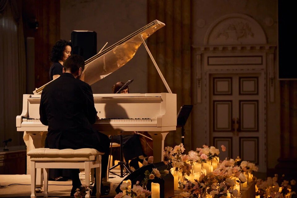 В роскошном Мраморном зале мэрии Москвы. Вы услышите избранные композиции из мира неоклассики и кино. Чувственные, мелодичные произведения коснутся струн сердца, а величественные мелодии из знаменитых кинофильмов позволят окунуться в загадочные, далёкие миры. Всё это — в исполнении блистательного рояля, элегантной скрипки и томной виолончели.