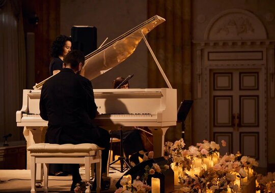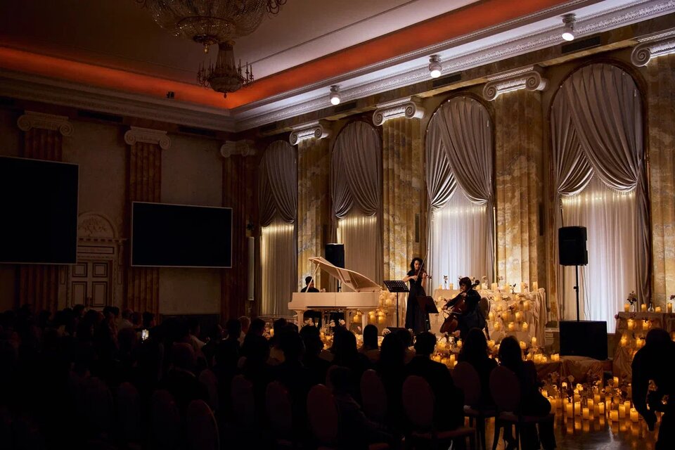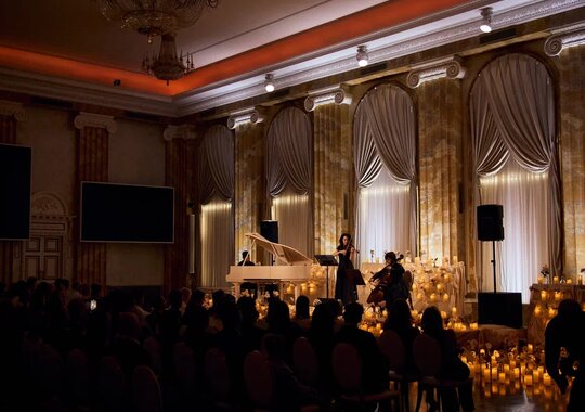 В роскошном Мраморном зале мэрии Москвы. Вы услышите избранные композиции из мира неоклассики и кино. Чувственные, мелодичные произведения коснутся струн сердца, а величественные мелодии из знаменитых кинофильмов позволят окунуться в загадочные, далёкие миры. Всё это — в исполнении блистательного рояля, элегантной скрипки и томной виолончели.