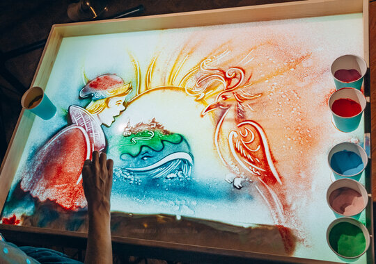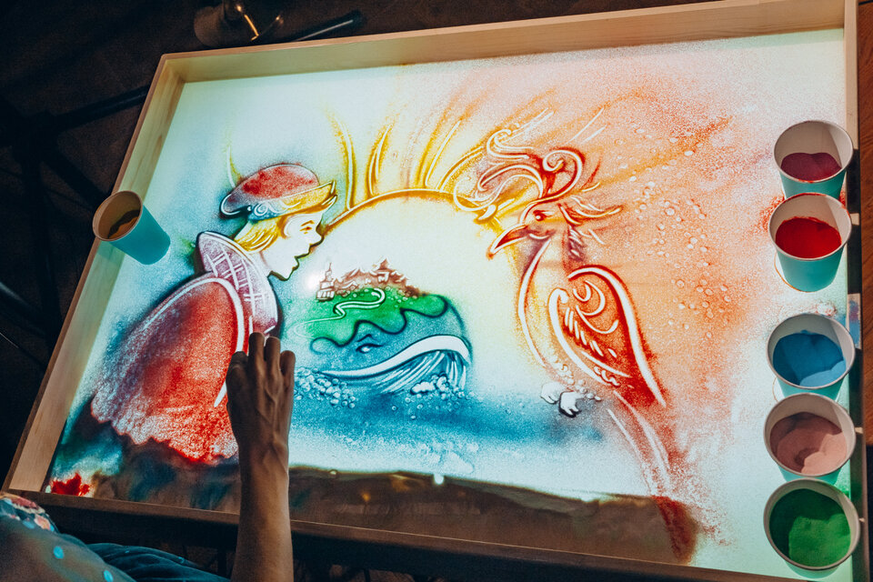 Сказочный мир предстанет в красочных песочных иллюстрациях художницы международного уровня Лилии Чистиной.