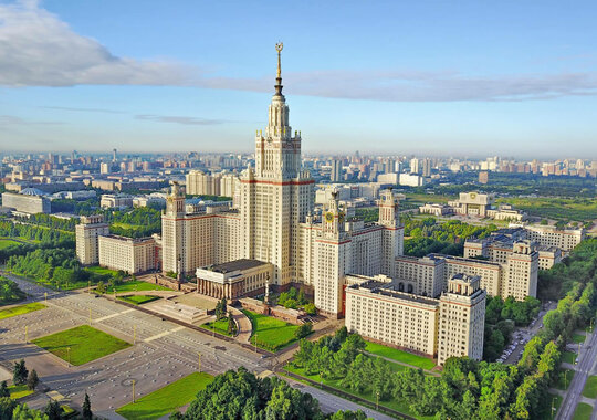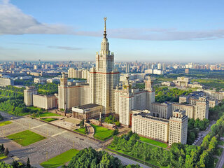 Главная смотровая площадка столицы на Воробьевых горах, высочайшая точка города. С нее открывается панорама города с высоты птичьего полета.
