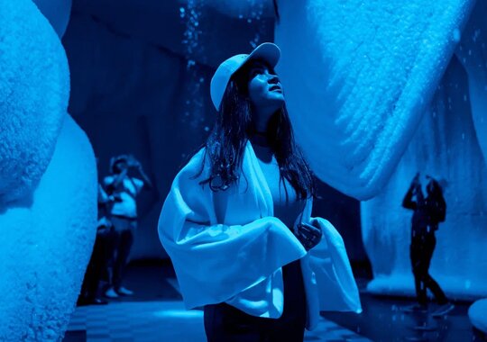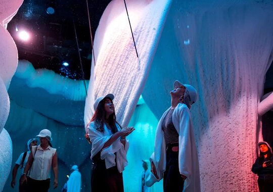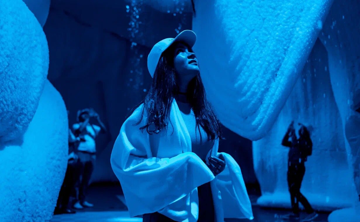 Иммер*снежное представление «В ьюжн» в Ледяной пещере — это аттракцион из снега, светомузыки и воспоминаний.